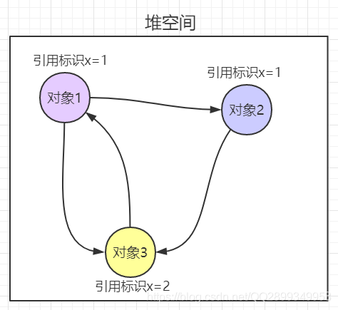 对对象添加引用的标识,每对对象增加一个引用,引用标识进行+1操作,减少一个引用,标识-1,当标识为0的时候,说明对象不存在引用可以被回收;